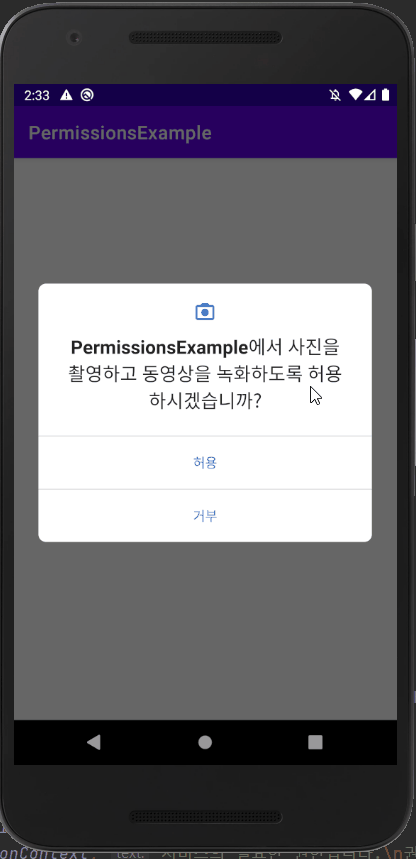 # 이 글은 애플리케이션에서 필요한 권한을 요청하고 확인하여 권한 허용 여부의 따른 동작을 설정하는 방법을 기술한다.