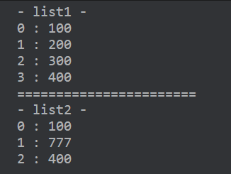 또한. 1번 경우와 다르게 index를 사용하여 list2에 접근하므로 값을 변경할 수 있다. (물론 mutableList이기 때문에 write가 가능한 것)