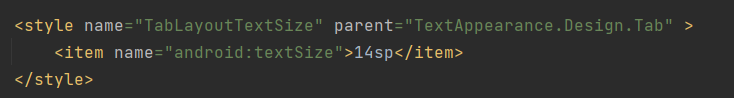 app:tabTextAppearance="@style/TabLayoutTextSize"