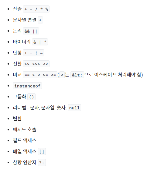 이외의 사용 가능한 표현식으로는 아래와 같이 있다.