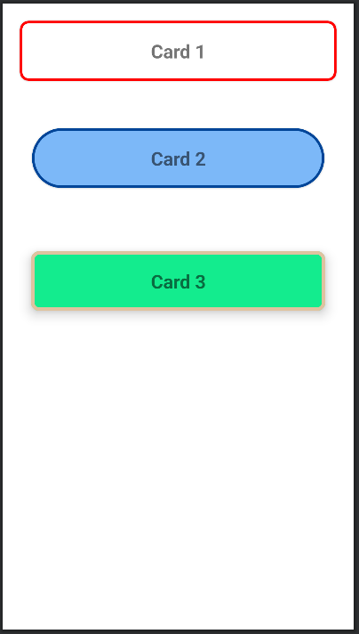 ● cardCornerRadius : 모서리의 둥근 정도를 지정한다. 지정한 값의 정도에 따라서 예시의 2번째 Card처럼 타원형으로 만들 수도 있다.