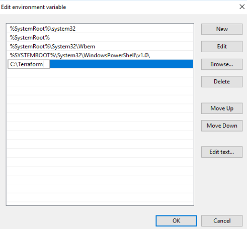 1-2-5. 앞서 terraform.exe 파일을 넣어두었던 폴더 경로를 새로 추가해준 후 확인을 눌러 적용한다.