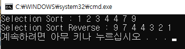 ● print / selction_sort / selection_sort_reverse 이 3개의 함수를 정의하였으며 각 함수명에서 기능을 유추할 수 있듯이 출력과 오름차순 선택 정렬, 내림차순 선택 정렬 기능을 하는 함수들이다.