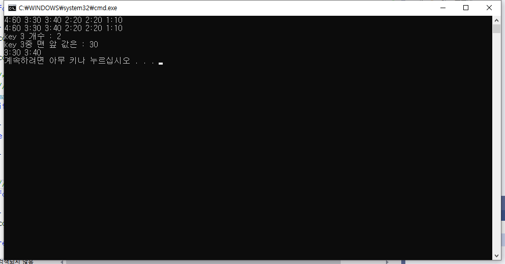 cout << "key 3 개수 : " << m.count(3) << "\n";