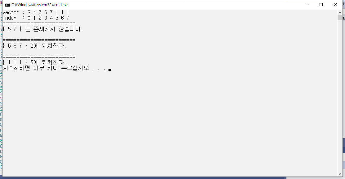 C++ 일련하는 원소 찾기 Search