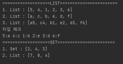 size 3만큼 List와 Set의 각 원소를 합한 리스트를 결과로 얻었다.