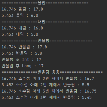 - 만약 반올림 후 Int 타입이나 Long 타입으로 반환받고자 한다면