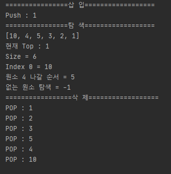 println("원소 4 나갈 순서 = ${stack.search(4)}") // Index 아님, 위에서부터 5번 째에 있다. + 위에서부터 탐색한다.
